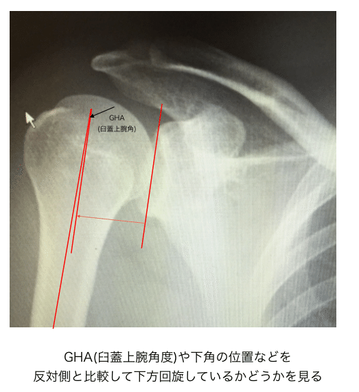 レントゲンで上腕骨頭と肩甲骨の位置