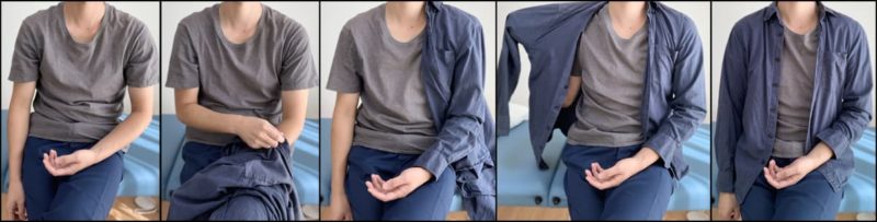 <前びらき・Tシャツの脱ぎ方>