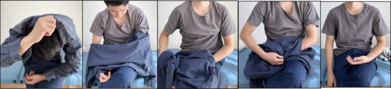腕を全く動かさずに服の脱ぎ着をすればいいのです。その方法をお伝えします。