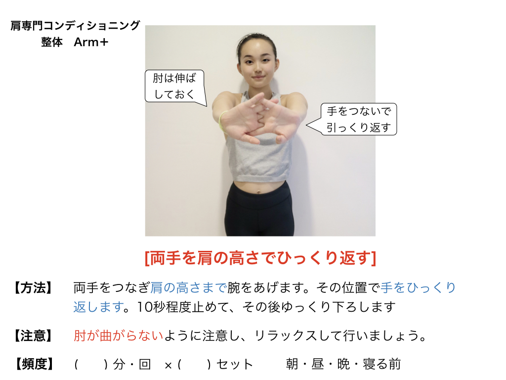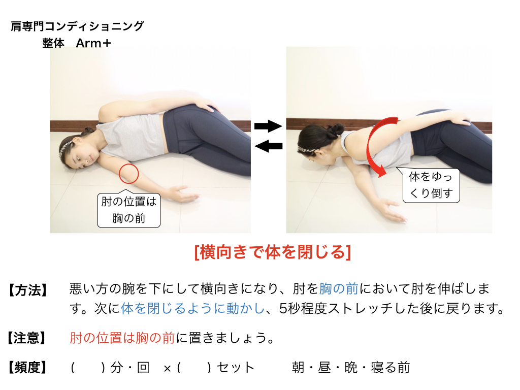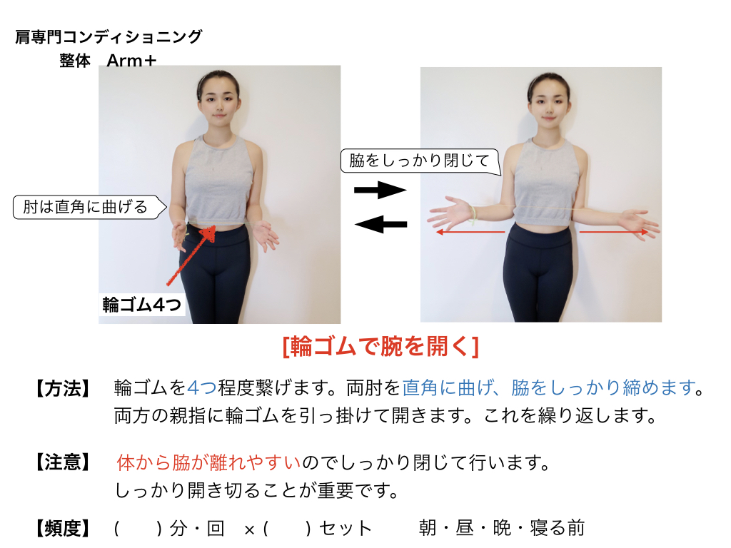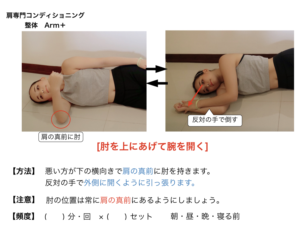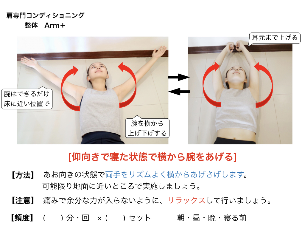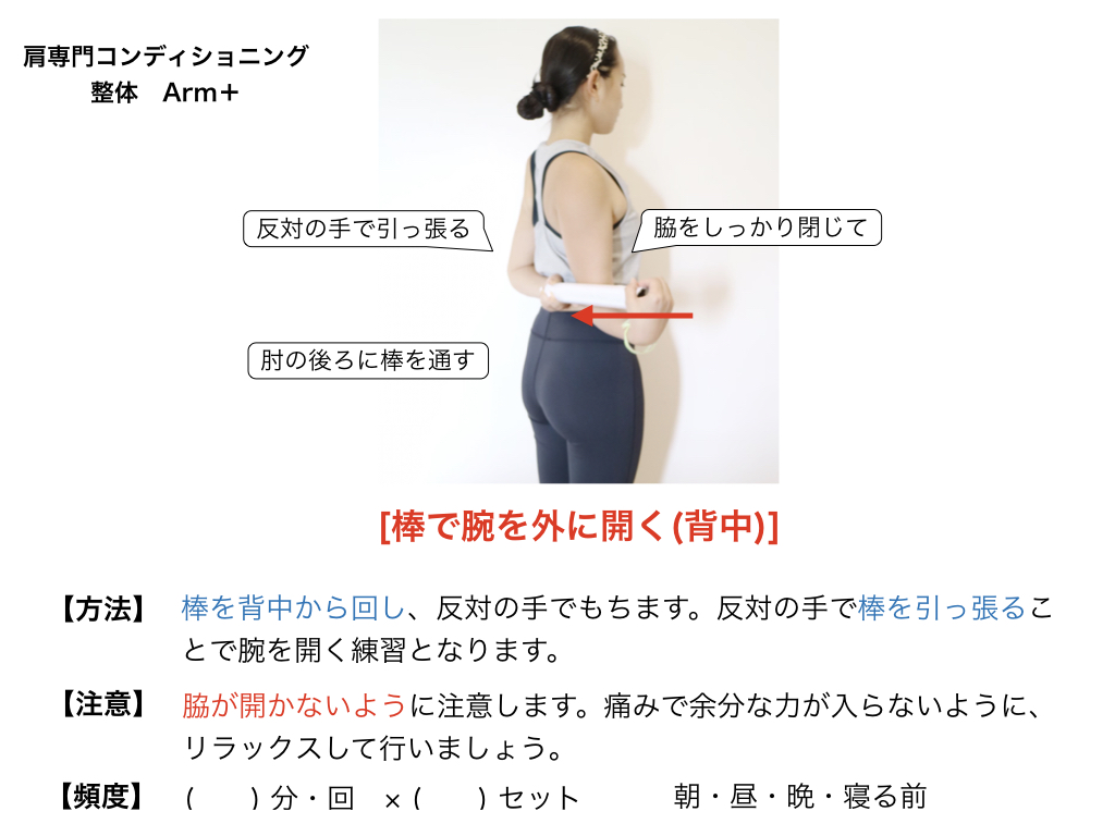 ※痛みのない範囲で外旋筋力(スムーズな挙上を行う上で重要)をつけて行くことをお勧めします。