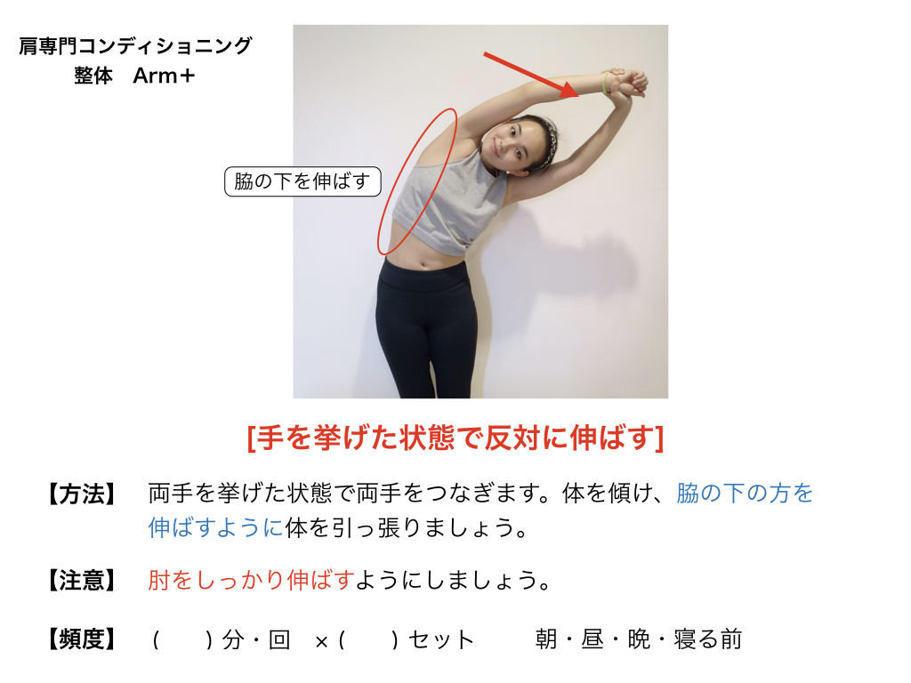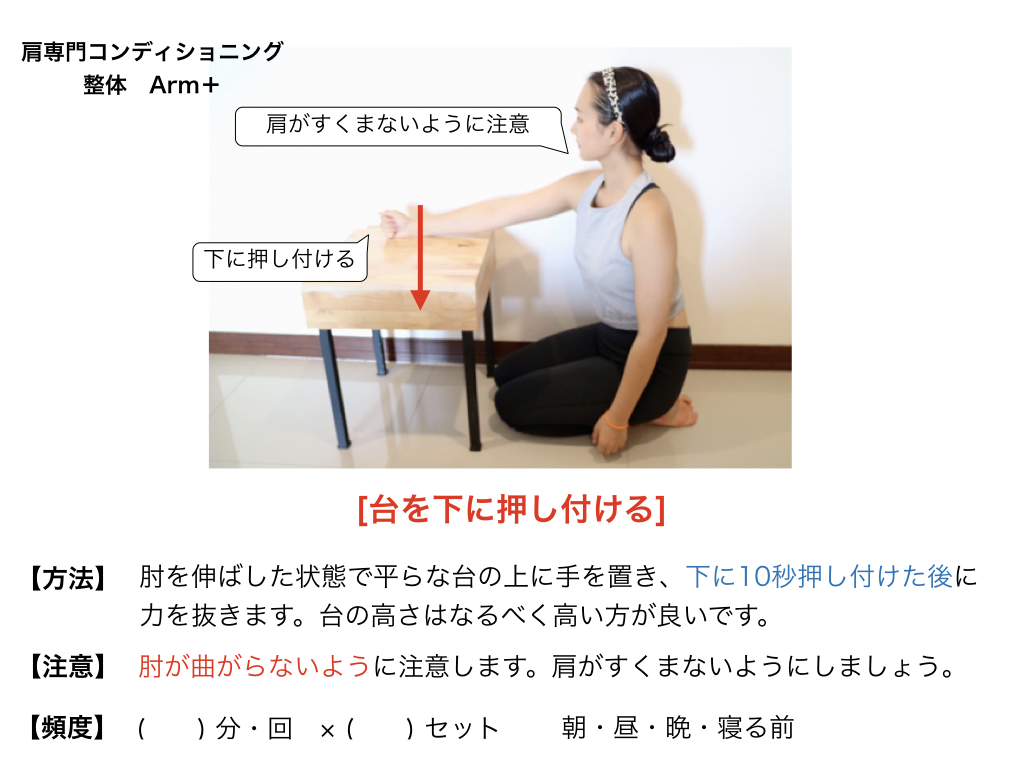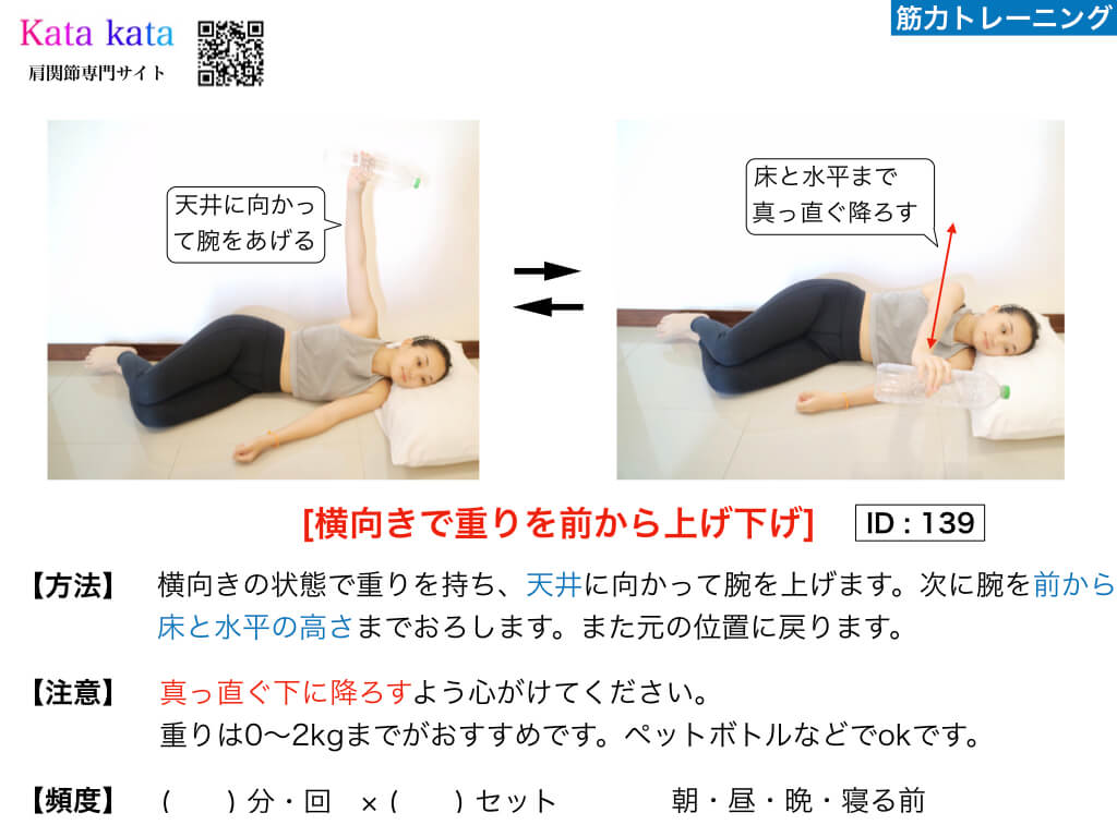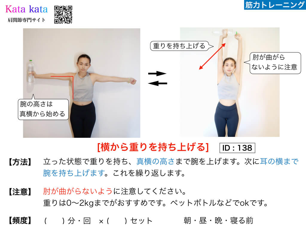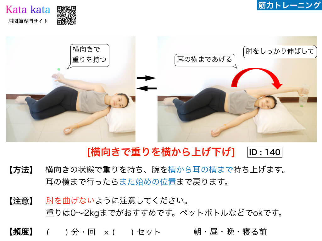 ※痛みのない範囲で外旋筋力(スムーズな挙上を行う上で重要)をつけて行くことをお勧めします。