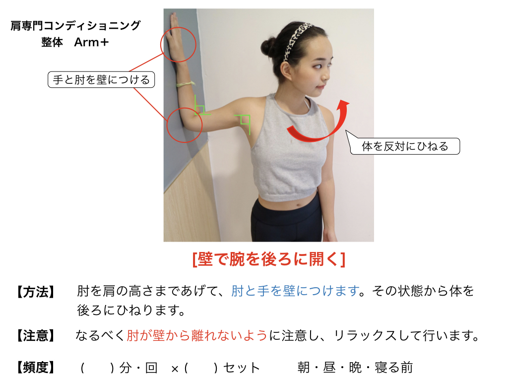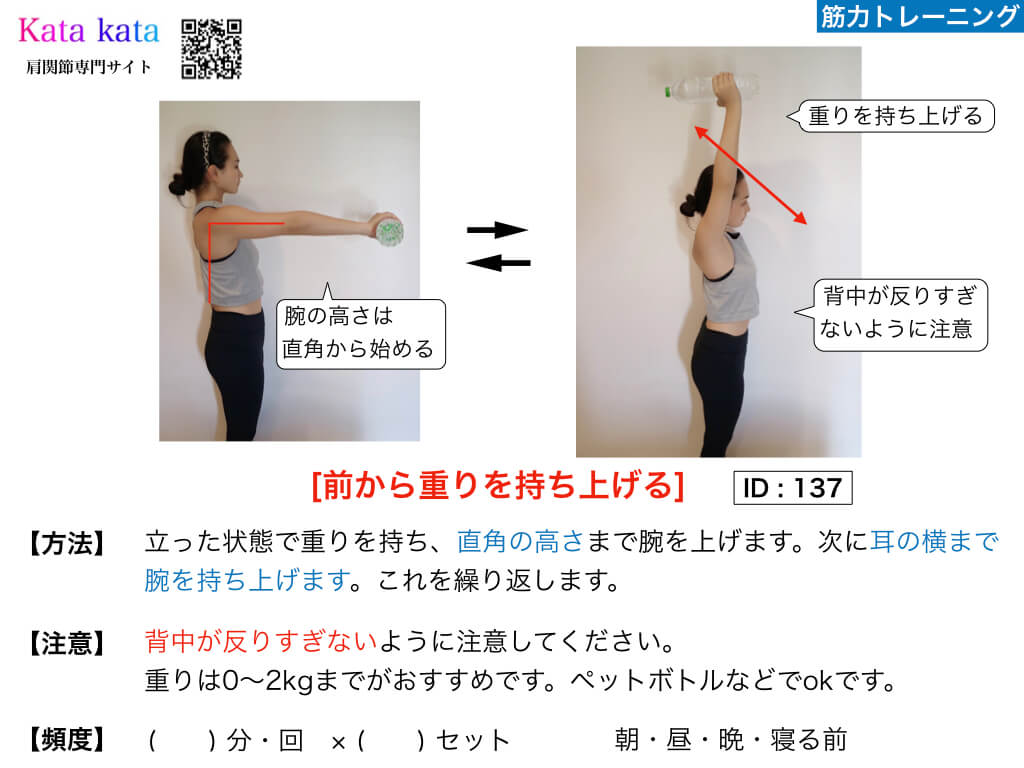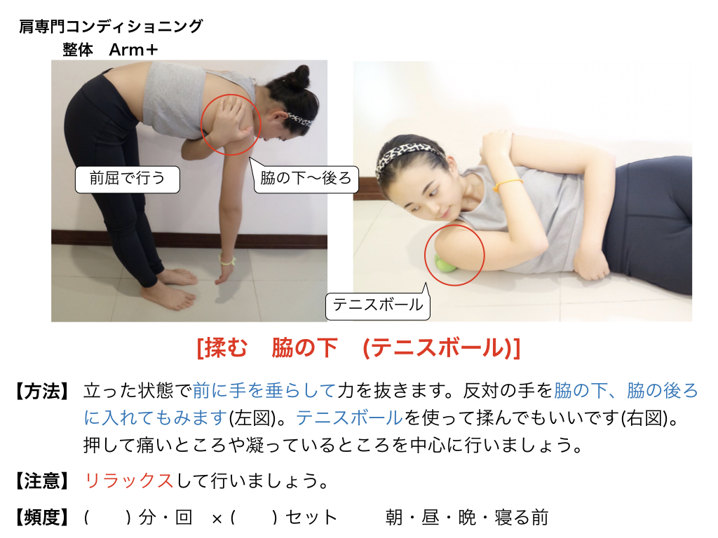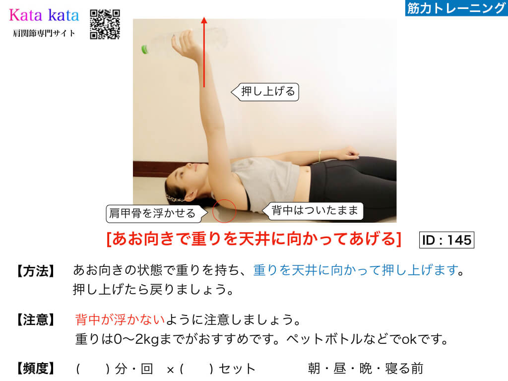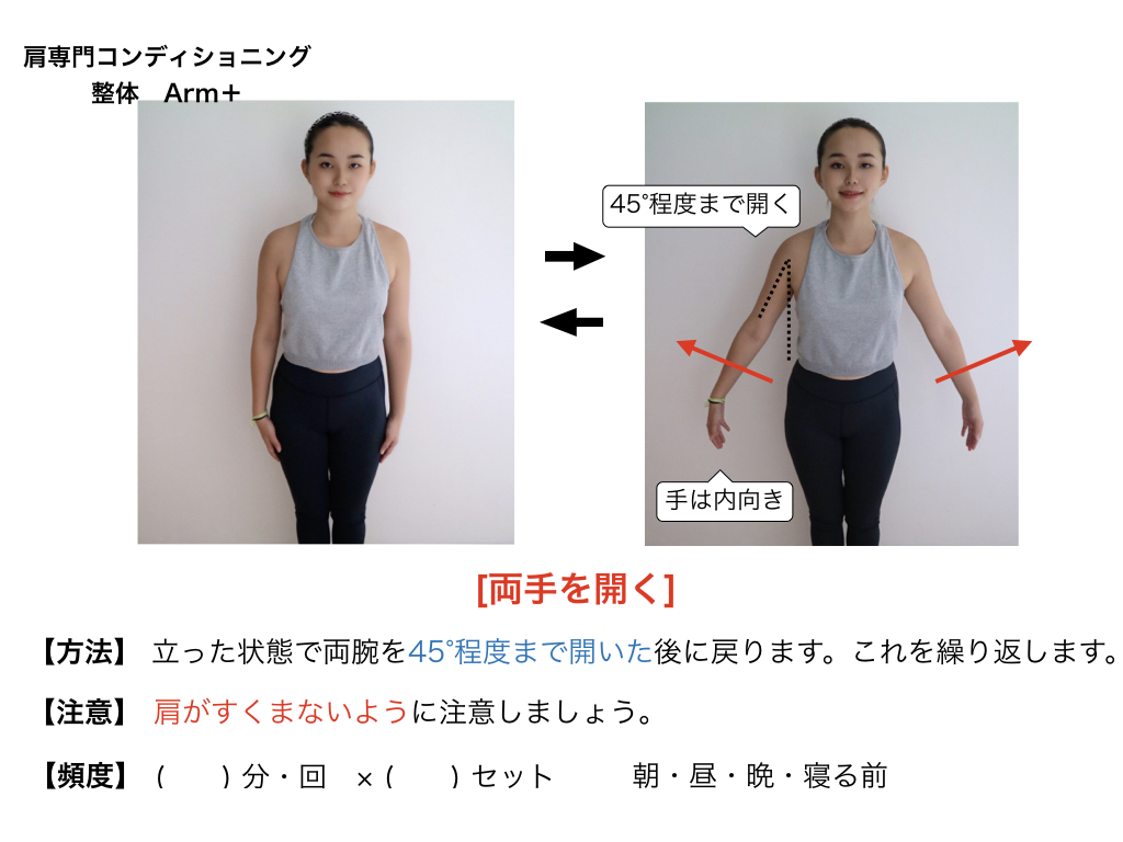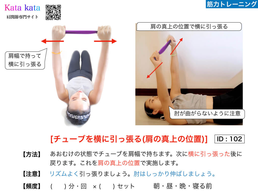 ※痛みのない範囲で外旋筋力(スムーズな挙上を行う上で重要)をつけて行くことをお勧めします。